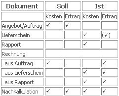 In der Nachkalkulation werden die relevanten Daten von Auftrag, Ausgangsrechnung und Rapport gegenübergestellt. Der wertmäßige Vergleich zeigt die Ist-Erlöse der Ausgangsrechnung im Vergleich zu den Ist-Selbstkosten der Rapporterfassung. Auf diese Weise wird ein Ist-Deckungsbeitrag ermittelt, der wiederum dem Soll-Deckungsbeitrag aus der Vorkalkulation gegenübergestellt wird. Dieselben Informationen werden für das kalkulatorische Betriebsergebnis angezeigt.