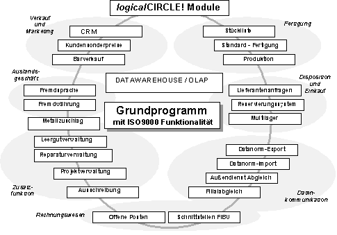 Die Kombinierbarkeit von Grundprogramm und Modulen (die Modulgruppen sind in der folgenden Abbildung dargestellt) ermöglicht eine hohe Anpassbarkeit an die betriebsspezifischen Erfordernisse.