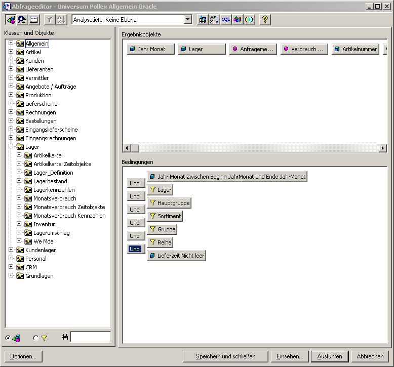 Einfache Erstellung von neuen Reports auf das bestehende Universum von POLLEX-LC ERP mit dem DWH-Explorer.